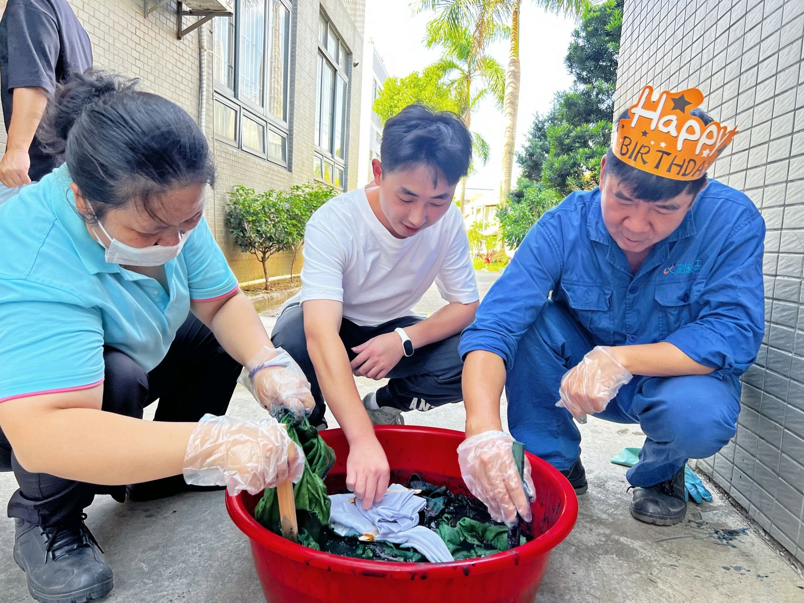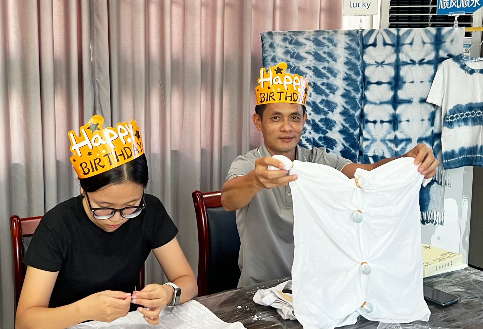 當?shù)谝豢|桂香悄然漫過窗欞,第三季度職工生日會如期而至。壽星們暫別案牘勞形,以扎染斑斕為筆,以生日的燭光為墨,在歡聲笑語中,共同勾勒出一幅秋日暖圖。